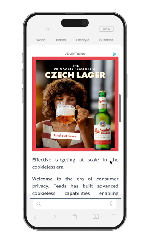 Budweiser Budvar partnered with Teads to boost brand awareness among UK consumers aged 25-54. The campaign aimed to position Budvar as an authentic Czech lager distinct from mainstream beers, leveraging custom-made creatives developed through Teads l’Atelier with Neurons AI for maximum impact.