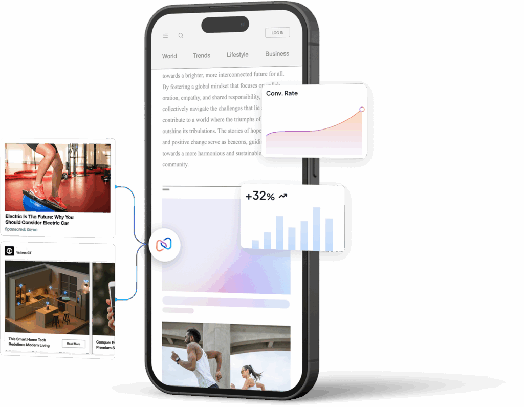 Predictive AI built on Teads + Outbrain’s combined data personalizes ad selection and layout by user, optimizing results in real time and reducing manual effort.