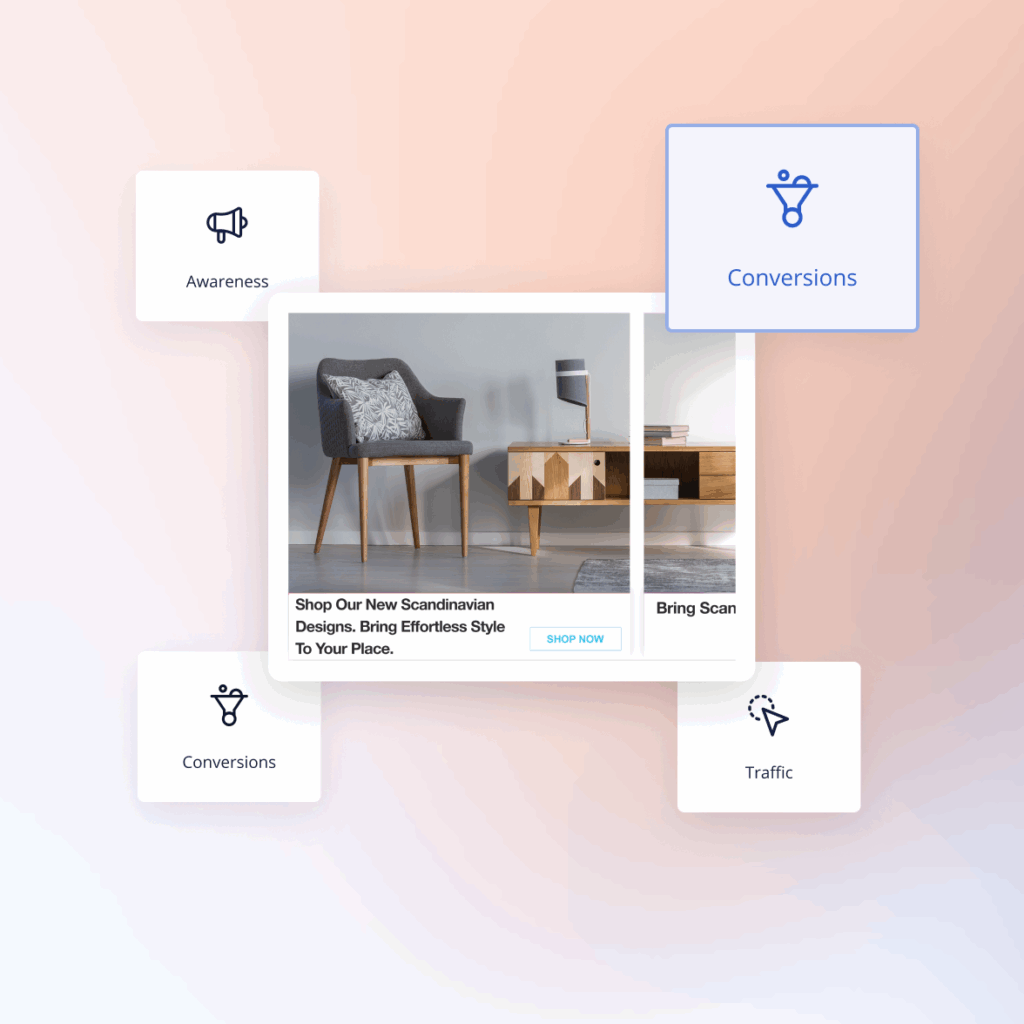 Define your goal, target your ideal customers, and upload your ads in minutes.